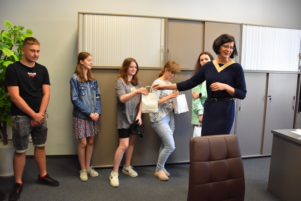 Uczniowie z wielkim zainteresowaniem odwiedzali poszczególne pokoje, rozmawiali z burmistrzem Adamem Wosiem i pracownikami urzędu, mogli także zasiąść w sali konferencyjnej i na kilka chwil wcielić się w rolę radnych. Obowiązkowym punktem programu było zwiedzanie wieży ratuszowej. Cenna lekcja – tak powiedzieli!