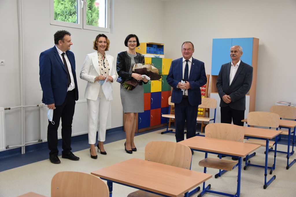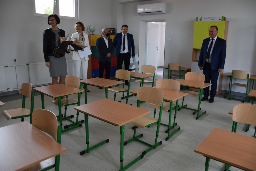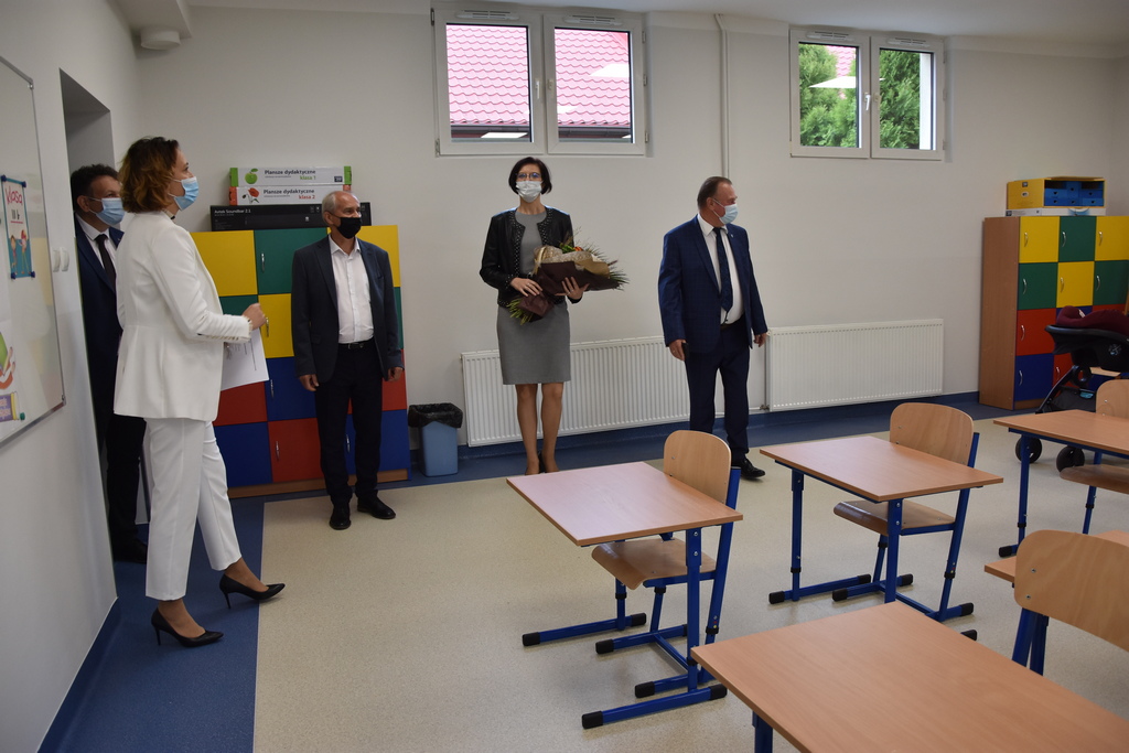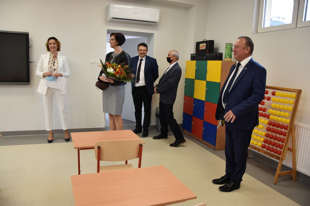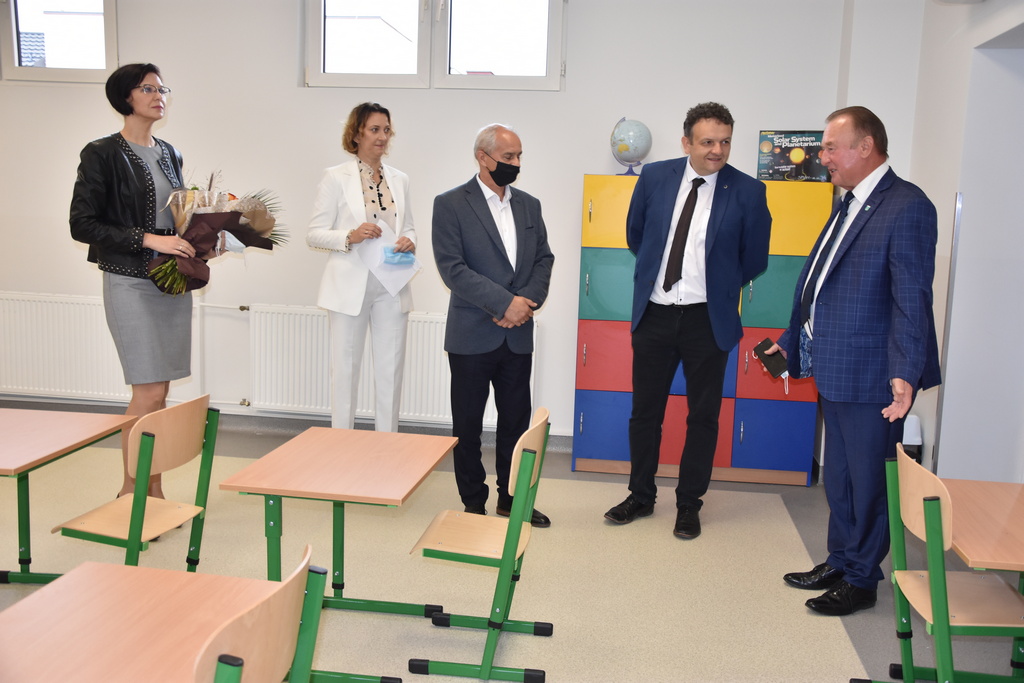 Po oficjalnej uroczystości burmistrz wraz z dyrektorem szkoły, sekretarzem MiG Barbarą Matyją, kierownikiem Referatu Edukacji i Sportu Wacławem Kondyrą oraz wiceprzewodniczącym Rady Rodziców Krzysztofem Bartusiem obejrzeli raz jeszcze zmodernizowaną część szkoły.