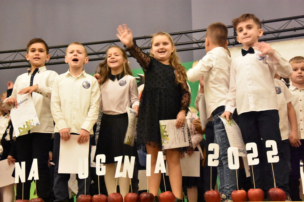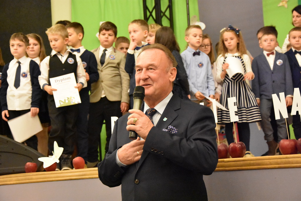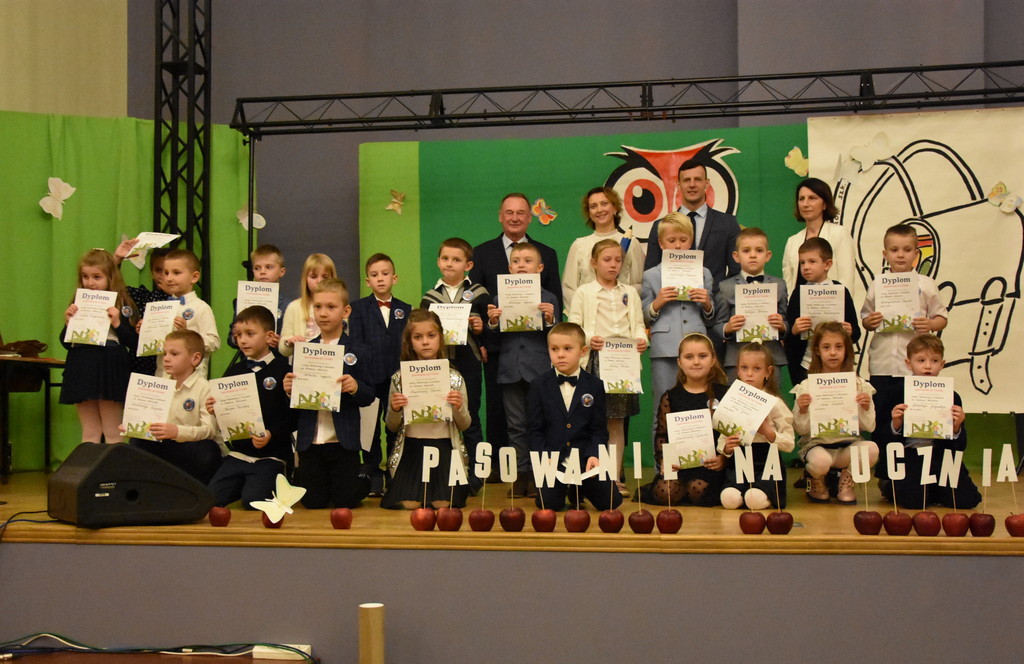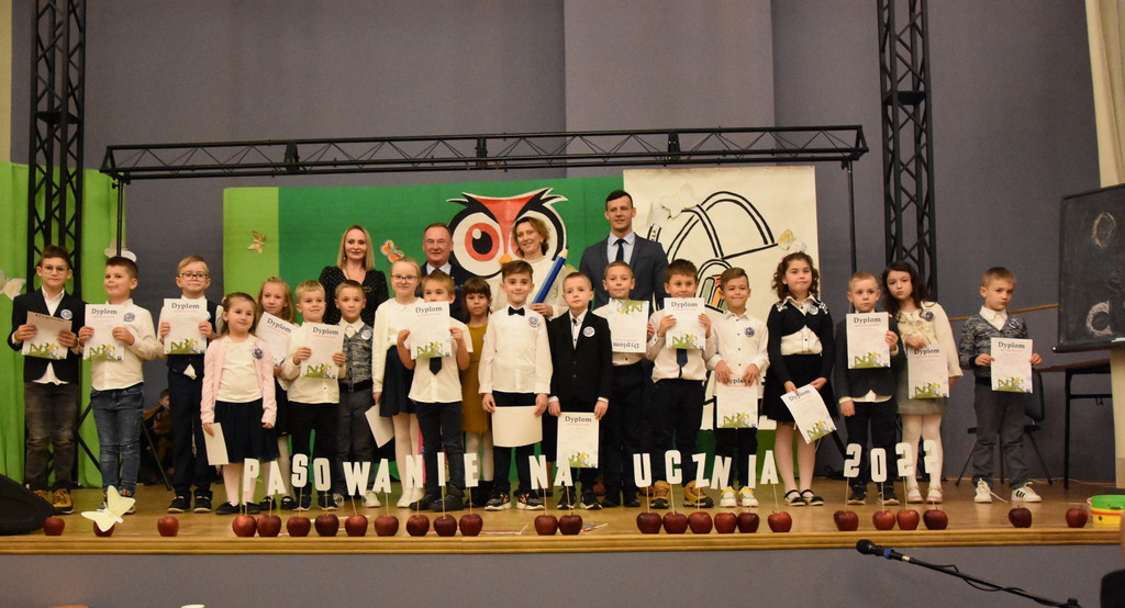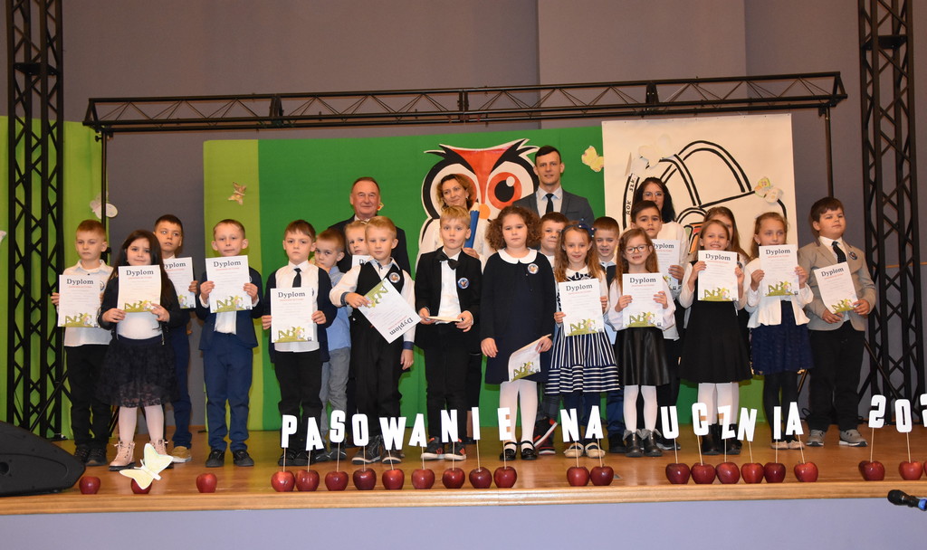 Podczas uroczystości pierwszoklasiści pokazali, że potrafią pięknie śpiewać i recytować. Najważniejszą częścią wydarzenia, na którą wszyscy czekali, było ślubowanie na sztandar oraz pasowanie wielkim ołówkiem przez dyrektor szkoły Jadwigę Majcher. Pierwszaki głośno przyrzekały być dobrymi i pilnymi uczniami oraz rzetelnie wypełniać swoje obowiązki, o czym przypominać im będą otrzymane dyplomy.