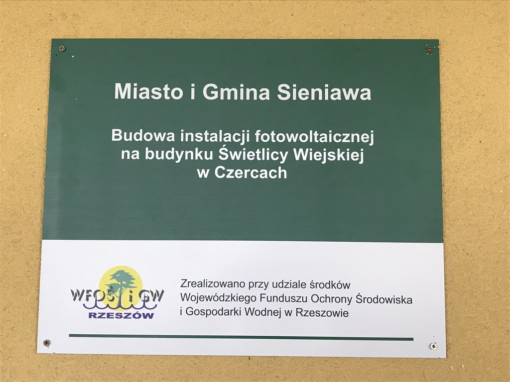 Na dwóch obiektach gminnych udało się w rekordowym czasie wybudować instalację fotowoltaiczną. Realizacja inwestycji była możliwa dzięki dofinansowaniu ze środków WFOŚiGW. Złożyliśmy dwa wnioski na zadania: Budowa instalacji fotowoltaicznej na budynku Świetlicy Wiejskiej w Piganach i Budowa instalacji fotowoltaicznej na budynku Świetlicy Wiejskiej w Czercach.