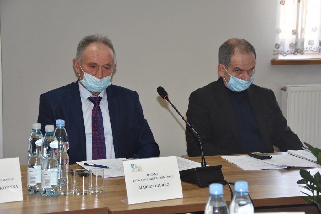 W sesji uczestniczyli także: zastępca burmistrza MiG Janusz Świt, radny powiatowy Jerzy Mazur, sekretarz MiG Barbara Matyja, skarbnik MiG Anna Nykiel, kierownicy referatów i pracownicy Urzędu Miasta i Gminy w Sieniawie oraz jednostek organizacyjnych, a także sołtysi.