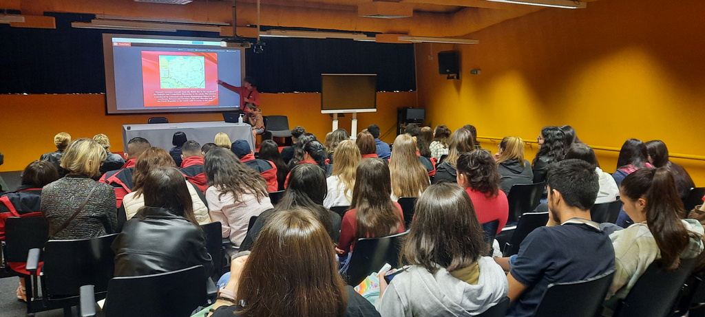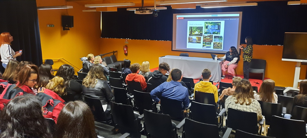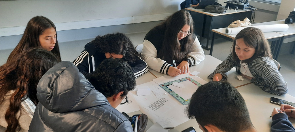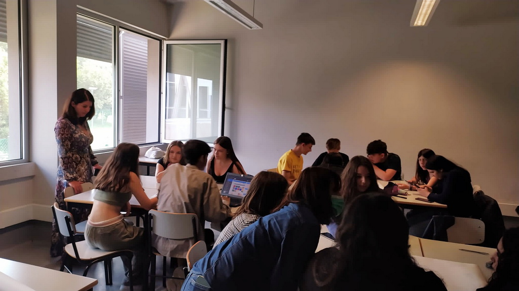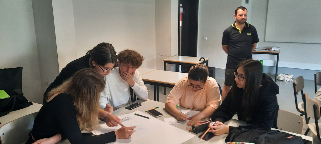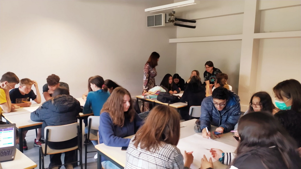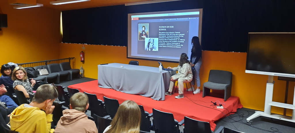 Pierwszy dzień w szkole rozpoczął się od obejrzenia prezentacji szkół z Rumunii, Czech i z Polski. Nasi uczniowie zapoznali widownię z Polską, miasteczkiem Sieniawa oraz ze szkołą, kończąc swoje wystąpienia polskim poczęstunkiem – wszyscy ze smakiem degustowali przywiezione przez nas słodycze. Rówieśnicy z Portugalii oprowadzili nas po szkole, opowiadając o tym jak wygląda typowy dzień portugalskiego ucznia. W szkole prowadziliśmy głównie zajęcia językowe i integracyjne w grupach portugalsko-polskich, uczniowie tworzyli także grę Monopol, projektując karty popularnych miast ze swoich krajów.