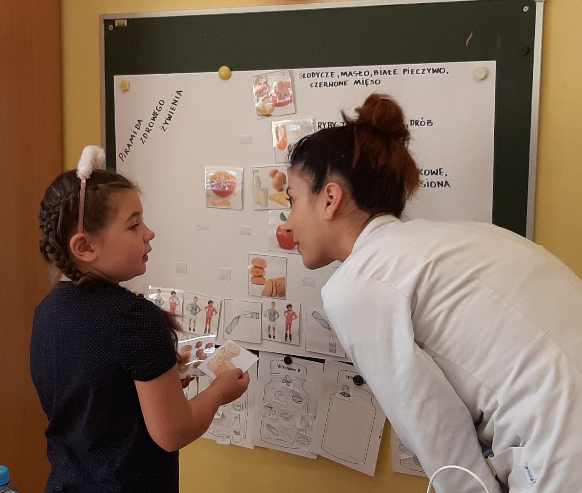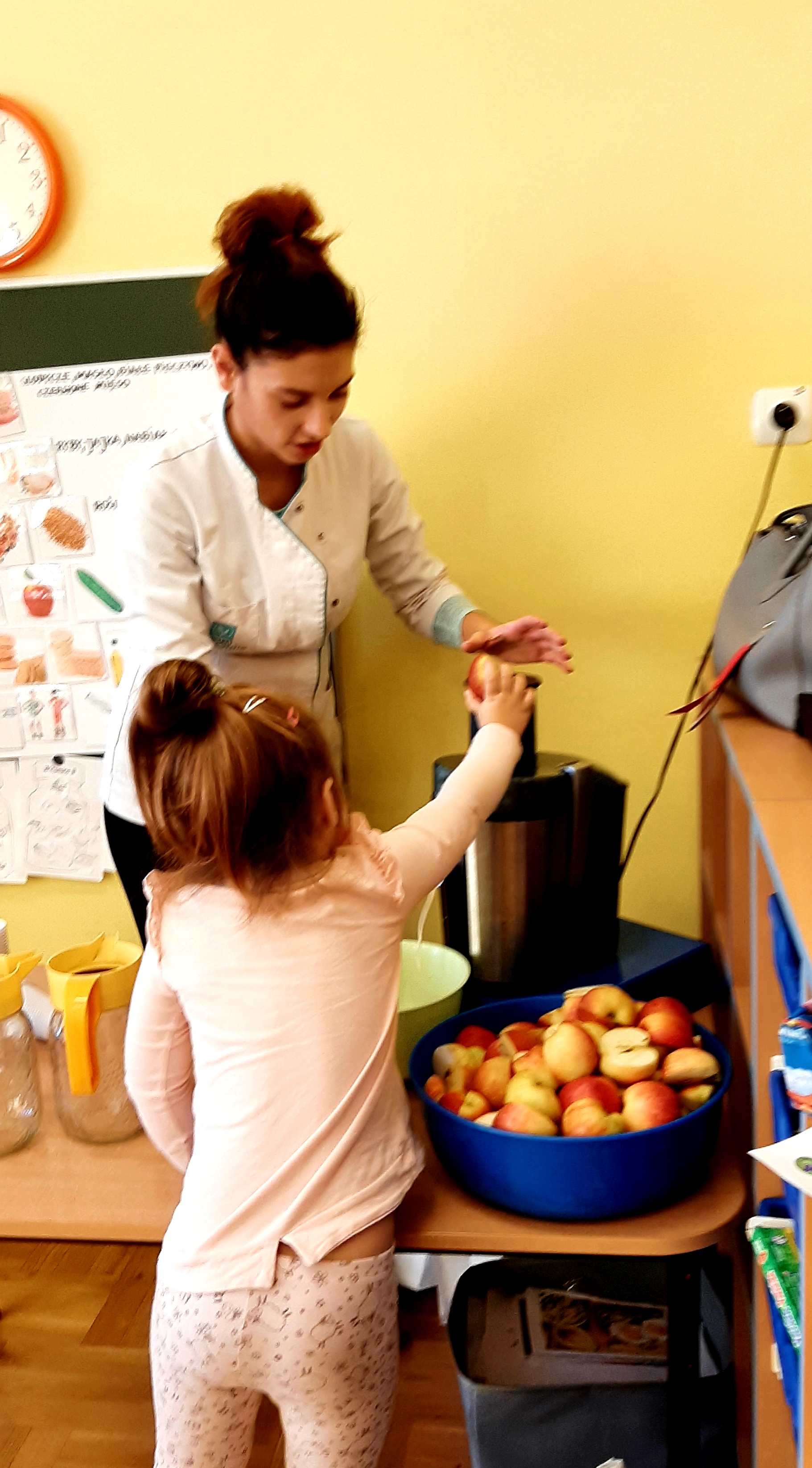 Drugiego dnia poznawały tajniki zdrowego odżywiania, na zajęciach z dietetyk PROJEKT ZDROWIE w Łańcucie p. Anielą Hulak. Na zajęciach dzieci dowiedziały się, które produkty są najzdrowsze, czym można zastąpić słodycze, wspólnie ułożyły piramidę żywienia i wykonały sok pełen witamin.