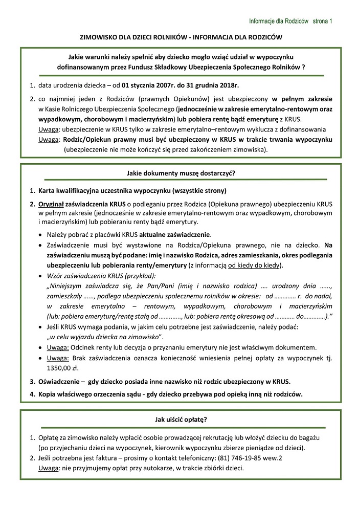 ZIMOWISKO - wypoczynek dla dzieci rolników
