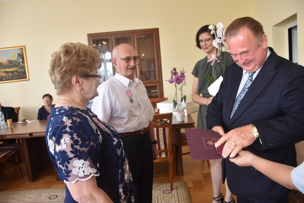 Małżonkowie, którzy przeżyli ze sobą pięćdziesiąt lat zostali uhonorowani dyplomami i medalami za długoletnie pożycie małżeńskie. Dekoracji dostojnych jubilatów w imieniu Prezydenta Rzeczypospolitej dokonał burmistrz Miasta i Gminy Sieniawa Adam Woś. Złożył jednocześnie życzenia wielu wspólnych lat w zdrowiu, pomyślności, jak najmniej trosk, jak najwięcej radości oraz by doczekali wspólnie kolejnych pięknych jubileuszy. Dostojni Jubilaci otrzymali również kwiaty oraz drobne upominki z rąk sekretarz MiG Barbary Matyi oraz zastępcy kierownika USC Stanisławy Napory.