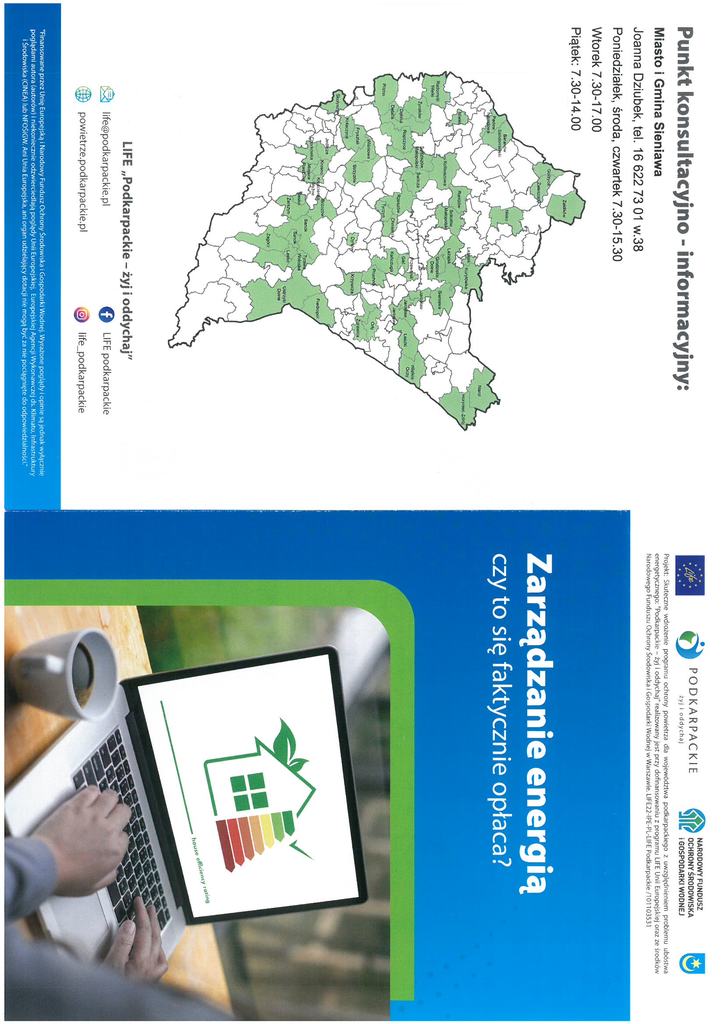 Miasto i Gmina Sieniawa przystąpiła jako Partner do realizacji projektu pn.: „LIFE IP – Skuteczne wdrożenie programu ochrony powietrza dla województwa podkarpackiego z uwzględnieniem problemu ubóstwa energetycznego: „Podkarpackie – żyj i oddychaj”. Projekt dofinansowany jest ze środków Unii Europejskiej oraz środków Narodowego Funduszu Ochrony Środowiska i Gospodarki Wodnej.