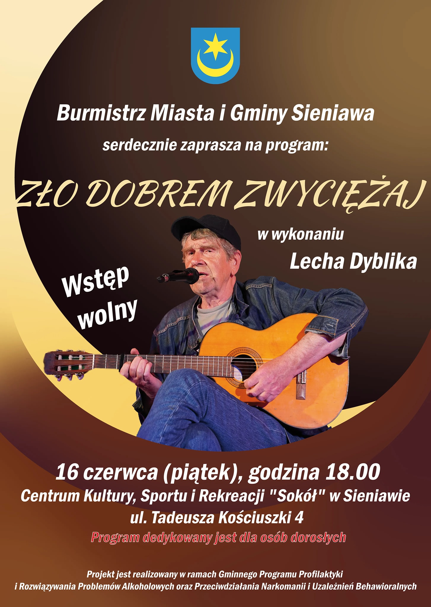 Lech Dyblik, wybitny aktor i pieśniarz znów zagości w Sieniawie. Spotkanie aktora z młodzieżą zachwyciło wszystkich obecnych, dlatego tym razem pragniemy zaprosić osoby dorosłe. Naprawdę będzie warto.